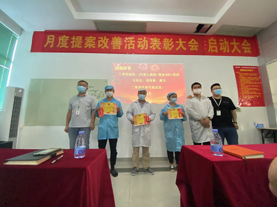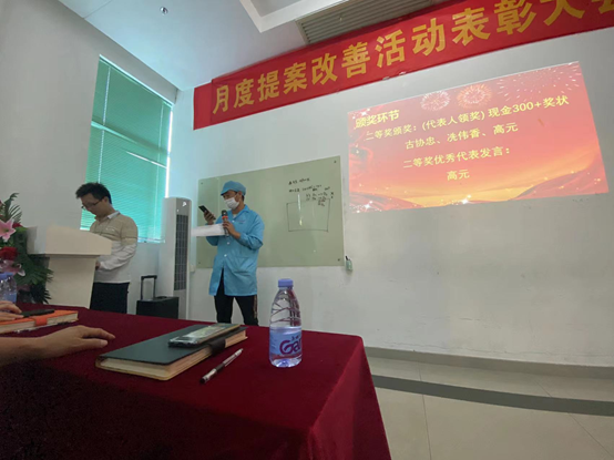 4月12日,華南工廠召開了三月提案改善表彰大會,為積極參與精益提案改善活動的員工進行頒獎。各部門領導和獲獎員工參與了本次頒獎儀式。